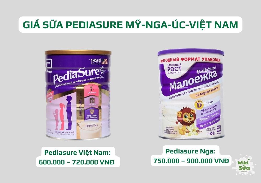 Bảng giá so sánh sữa Pediasure các nước (Nga, Mỹ, Úc, Việt Nam)