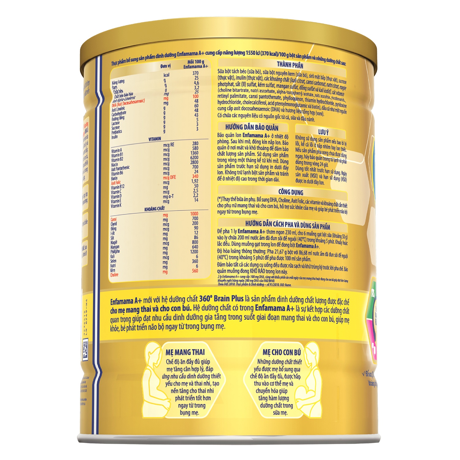 Thành phần dinh dưỡng cấu thành sữa bầu Enfamama A+ Vanilla 830g