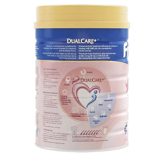 Friso Gold Mum hương cam 900g được bổ sung công thức DualCare+ độc đáo, mang đến nguồn dinh dưỡng kép: vừa hỗ trợ hệ tiêu hoá khỏe mạnh cho mẹ, vừa tạo nền tảng phát triển vững chắc cho bé ngay từ trong bụng mẹ.