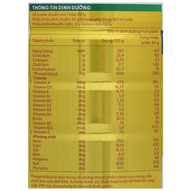 Thông tin sản phẩm sữa bột cho người lớn Anlene Gold
