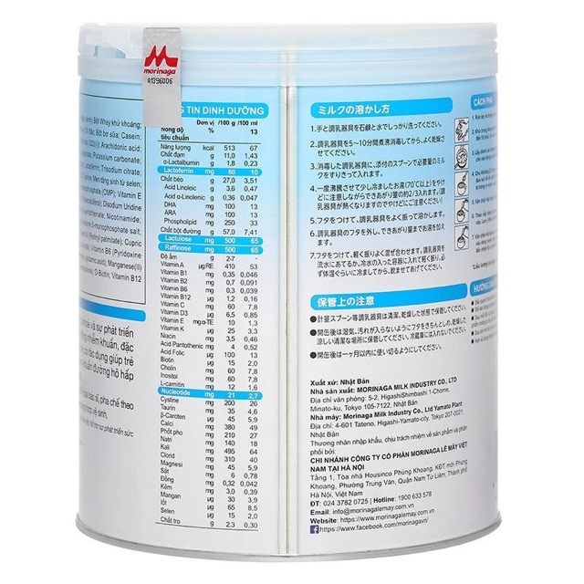 Sữa bột Morinaga Hagukumi số 1 800g (0–6 tháng) là dòng sữa công thức cao cấp đến từ Nhật Bản, được nghiên cứu đặc biệt dành cho trẻ sơ sinh trong giai đoạn 0–6 tháng tuổi – thời kỳ quan trọng hình thành nền tảng phát triển đầu đời. Với công thức gần giống sữa mẹ, sản phẩm giúp bé hấp thu tốt, tăng cường sức đề kháng và phát triển toàn diện cả về thể chất lẫn trí não.
