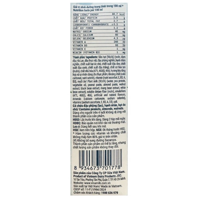 Sữa được chiết xuất từ 9 loại hạt quý, bao gồm: