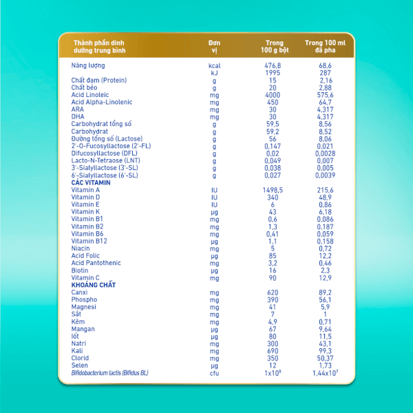 Tăng cường hệ miễn dịch: Bổ sung Bifidus BL – lợi khuẩn có lợi giúp cân bằng hệ vi sinh đường ruột, tăng sức đề kháng tự nhiên.